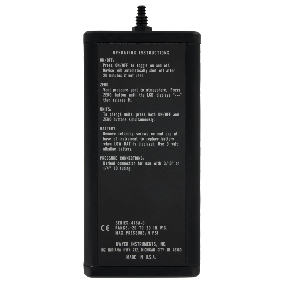 The Series 476A Single Pressure Differential Pressure Digital Manometer can be used to measure low pressures from -20 to 20 in w.c. with ±1.5% FS accuracy. The Series 478A Single Pressure Differential Pressure Digital Manometer can be used to measure positive, negative, or differential pressures with ±1.5% full-scale accuracy. Both units are constructed of an extruded aluminum case for exceptional durability.
