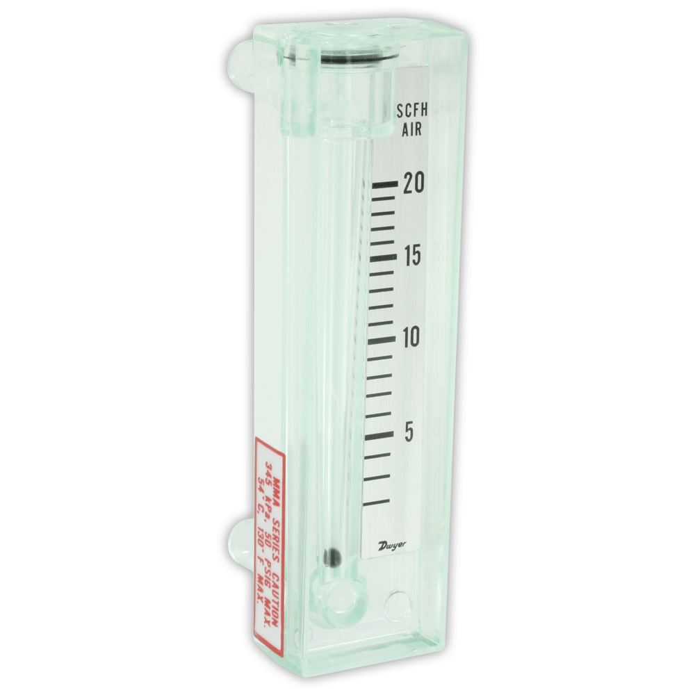 The Series MM Mini-Master® Flowmeters consists of two series of flowmeters suitable for both gas and liquid applications with advanced features at a low cost. The Series MMA is a 2" (51 mm) scale flowmeter that is user configurable with or without non-removable top or bottom front mounted metering valves. It is constructed from transparent nylon material providing high chemical resistance and is easily disassembled via the provided key for cleaning or reconfiguration. The Series MMF is a 1-1/2" (38 mm) scale compact flowmeter ideal for measuring small volume air. It features bezel type mounting that can be quickly installed from the front of the instrument panel.