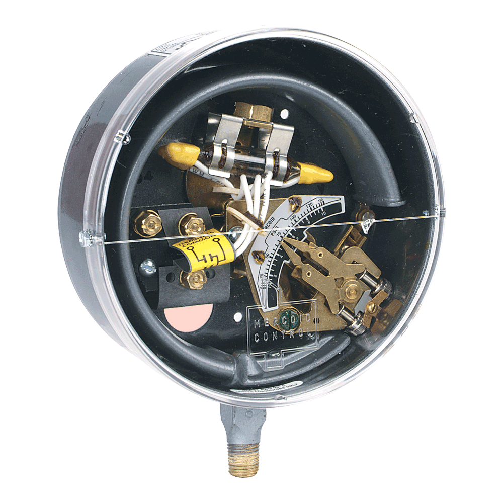 Customers tell us that the Series DA/DS Bourdon Tube Pressure Switches are the best pressure switches made. The Mercoid DA/DS Series is one of the world’s broadest lines of pressure switches. The DA/DS Series has extremely high sensitivity and great repeatability. The DA Models are equipped with two external adjustments, one for setting high pressure operating point, the other for setting low pressure operating point. Deadband, the difference between high and low setpoints, is adjustable over the full-scale. The DS Models are equipped with a single external adjustment for setting operating point only. For mercury-free switches we offer the snap action switch. Hermetically sealed mercury switch also available.