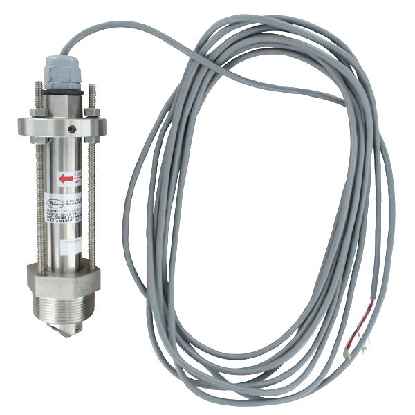 The Series PFT Insertion Paddlewheel Flowmeters are used to monitor liquid flow rates in pipes from 1-1/2 to 40" and is available in brass or 316 SS body. The unit outputs a frequency proportional pulsed or 4 to 20 mA output. The pulse models are a square wave output signal with frequency proportional to the flow velocity and the 4 to 20 mA models have a linear output of the velocity with 4 mA equal to 0 ft/s and 20 mA equal to 25 ft/s.